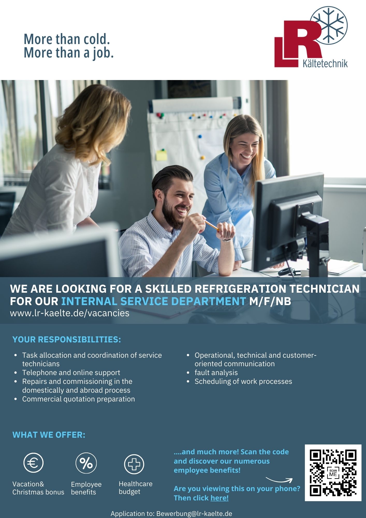 SKILLED REFRIGERATION TECHNICIAN FOR OUR INTERNAL SERVICE DEPARTMENT (M/F/NB)