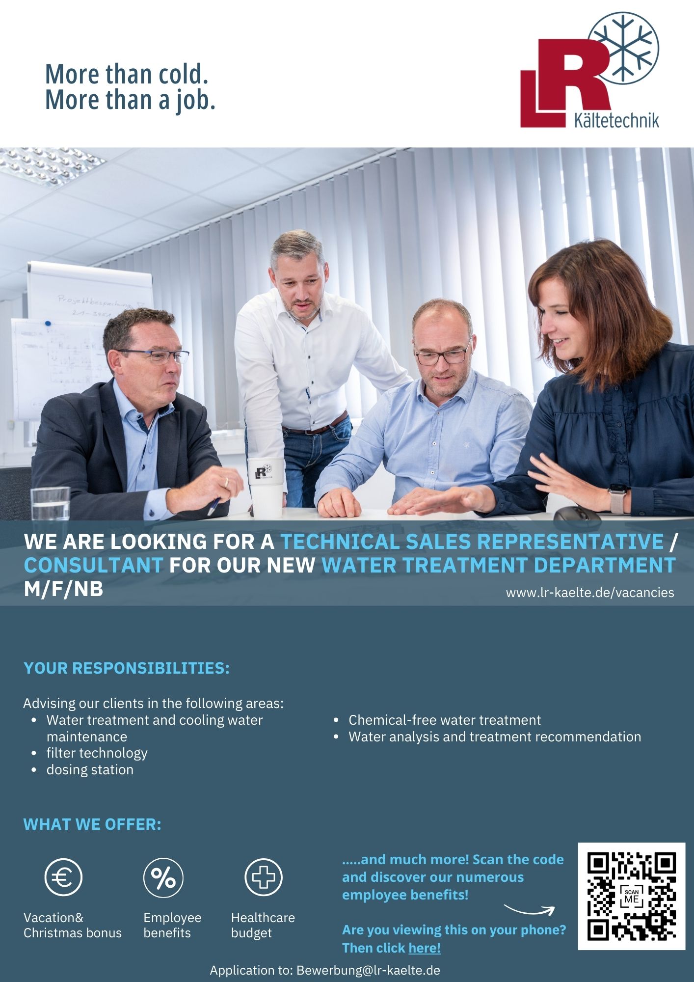 TECHNICAL SALES REPRESENTATIVE / CONSULTANT FOR THE WATER TREATMENT DEPARTMENT (M/F/NB)